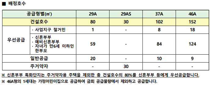 • 46A형의 1세대는 가정어린이집으로 공급하여 금회 공급물량에서 제외하고 공급합니다.