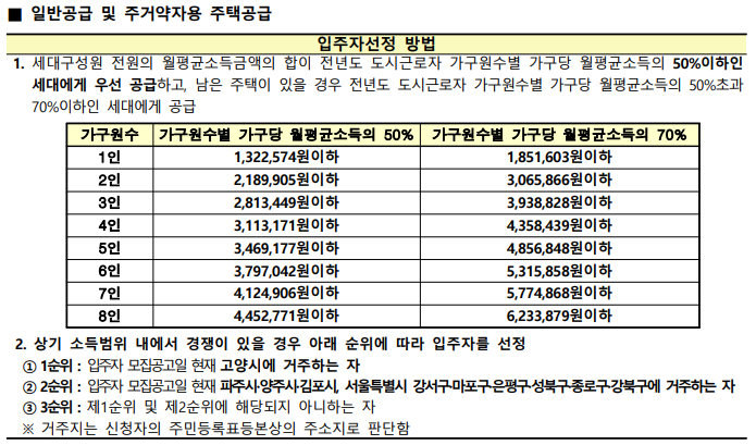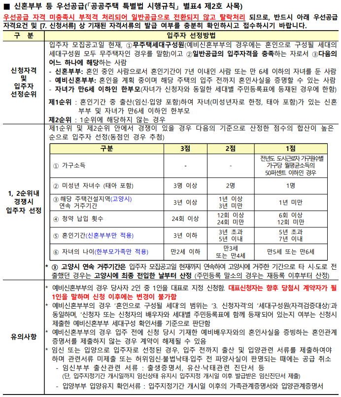 ※ 공고일 기준 신청순위와 주민등록등본 주소지 순위가 다를 경우, 부적격 탈락됨을 유의하여 주시기 바랍니다.
