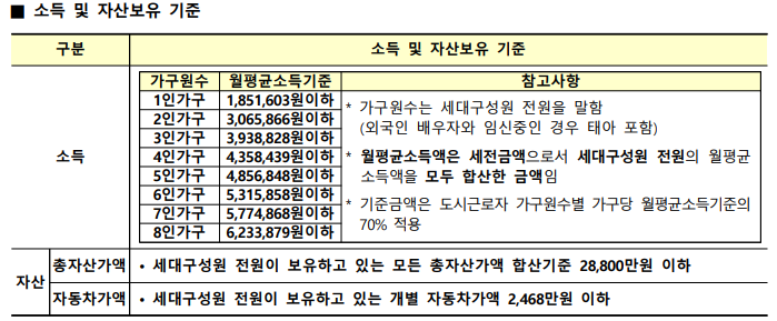 입주자모집공고일(2020.11.30) 현재 무주택세대구성원으로서 아래의 ‘소득 및 자산보유 기준’을 충족하는 자 (단, 신청자의 세대구성원 중에 과거에 공공임대주택 임차인으로서 불법양도·전대 행위로 적발된 후 4년이 경과 되지 않은 자가 있는 경우 신청자는 공공임대주택 입주자로 선정 불가)