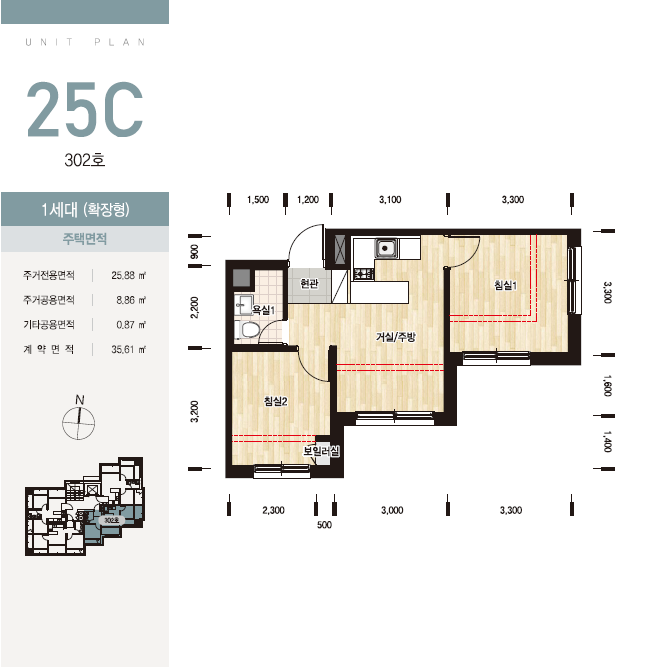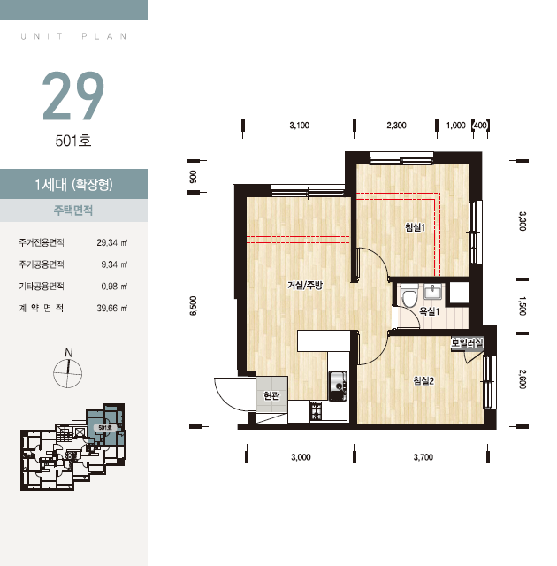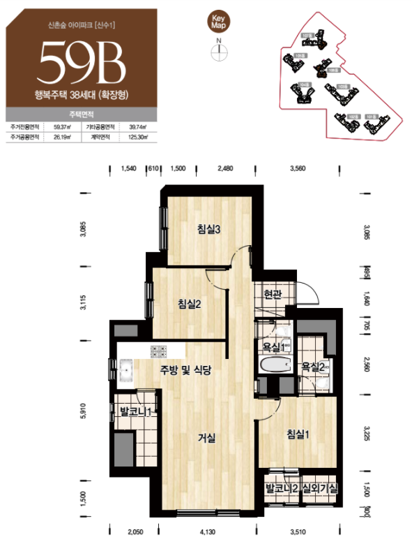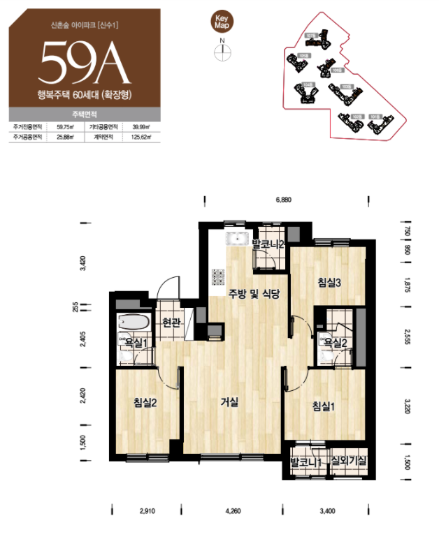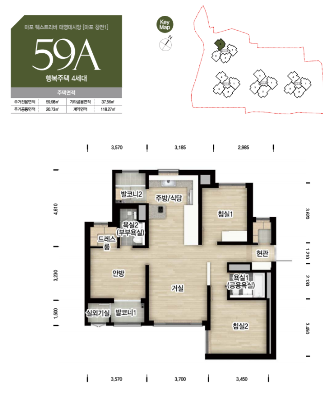 • 면적은 소수점 둘째 자리까지 표시되므로 계산상 소수점 셋째 자리의 처리 방식 차로 인해 연면적과 전체 계약면적이 서로 다를 수 있습니다.