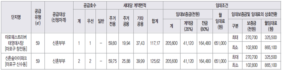 2. 모집 주택(마포구 외 지역은 입주자 공고문 참고)