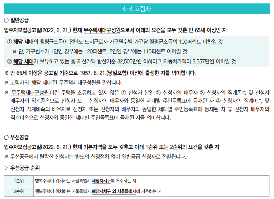 ※ ‘무주택자’란 주택을 소유하고 있지 않은 자를 말합니다. (세대 내 다른 구성원이 주택을 소유해도 신청 가능)