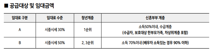 ○ 공고일 현재(2024. 7. 26.) 19세 이상 39세 이하인 무주택세대 구성원 으로서 아래의 신혼부부Ⅰ 신청자격 중 하나에 해당하고, 해당 세대의 월평균소득이 전년도 도시근로자 가구원수별 가구당 월평균 소득의 70% 이하(배우자가 소득이 있는 경우 90%)이며, 해당 세대의 소득 · 자산이 기준에 부합하는 자.