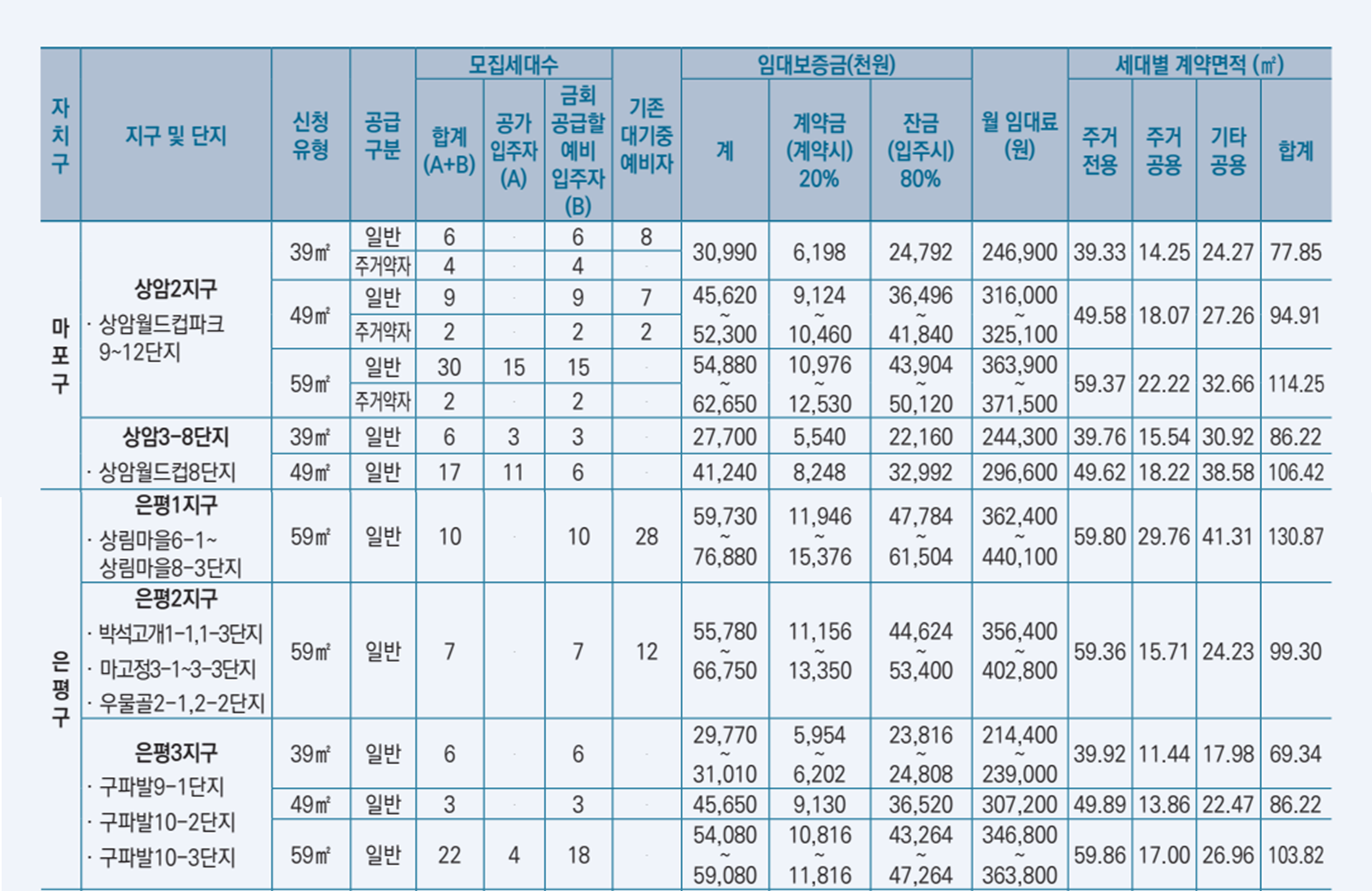 2. 모집 주택(서울 마포구, 은평구 外 지역은 공고문 참고)